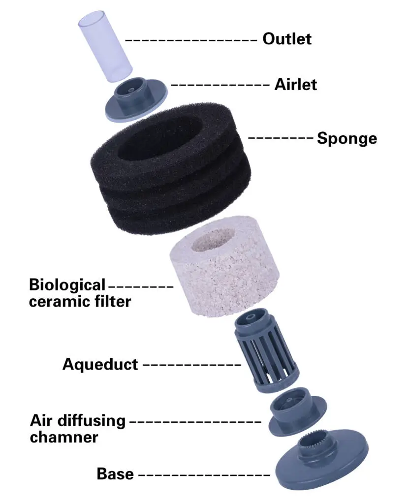 Removable Foam Cartridge: Acts as a mechanical pre‑filter to trap debris and particulate matter; the cartridge can be rinsed or replaced without disturbing the internal bacterial culture.