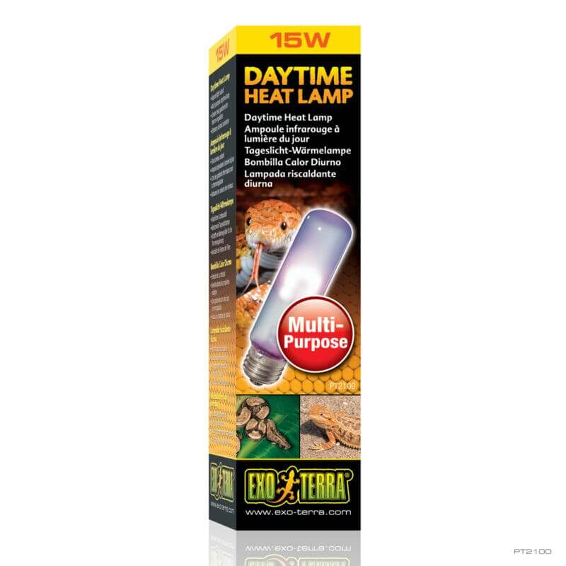 A broad-spectrum daylight lamp with a Neodymium sleeve. The spectrum is ideal for plant’s photosynthesis and the UVA (ultraviolet A) light contributes to reptiles’ physiological well-being. Another important factor is the heat emitted by this bulb to increase the over all ambient temperature in the terrarium.