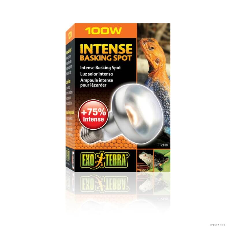 A lamp specifically designed as a basking spot lamp. The tight beam can be directed precisely on an area to create a basking site. The heat and light in the beam is increased by 35%, allowing greater distances between the bulb and the basking site. The UVA (ultraviolet A) light contributes to reptiles’ physiological well-being.